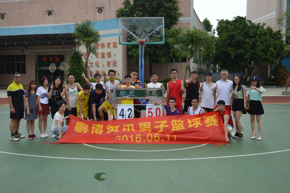 经过两个星期的酝酿,在6月11日,公司组织的男子篮球赛终于开锣了。为了活跃场内外气氛和增加球赛的刺激感,这次球赛采取了投注形式。因为鹏程队大热和让分,为该队伍增加了不少压力,一开场被博敏队先拔头筹,率先入球。在博敏队连续得分的情况下,鹏程队的球员也开始进球了,但是比分一直保持十几分的差距。鹏程队面对球员受伤,抽筋等状况下,仍然负隅顽抗,令拉拉队的欢呼声、喝彩声此起彼伏。经过60分钟的艰苦鏖战,博敏队凭借良好的团队配合和战术运用,以50:42战胜了鹏程队,夺得本次篮球赛的冠军。