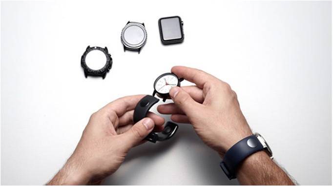 这是怎么做到的呢?很简单,把这个叫Sgnl的表带装在你任何一款手表上,你只要用手按住耳朵就可以听电话。